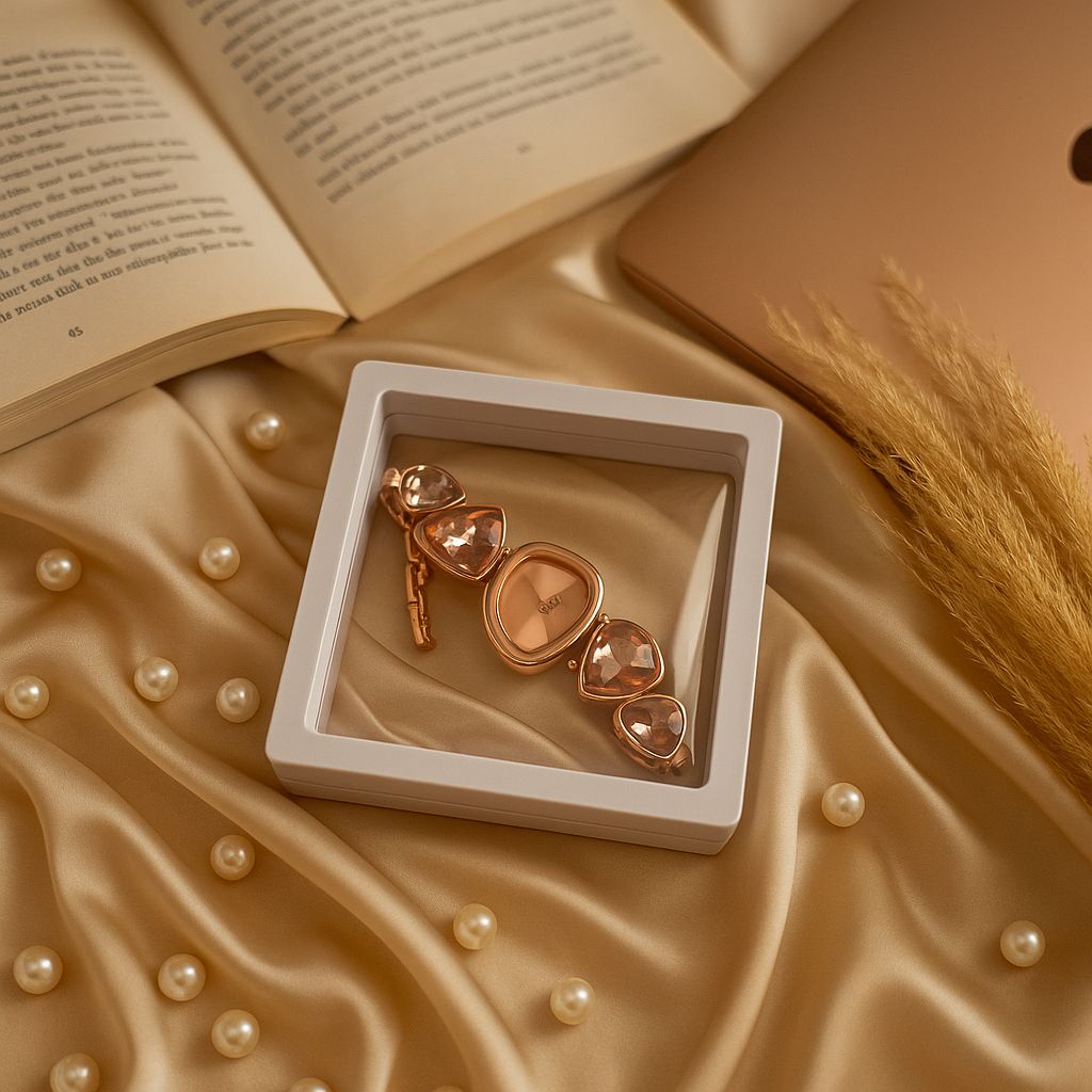 Elevate your style with this expert-crafted Crystal Studded Analog Watch designed for women. Featuring a unique asymmetrical rose gold dial paired with a matching stainless steel strap, it combines elegance with contemporary fashion. Precision analog movement ensures reliable timekeeping, while the crystal embellishments add a subtle sparkle. Made in India, this watch offers both aesthetic appeal and durable quality, perfect for those who appreciate refined craftsmanship and standout design.