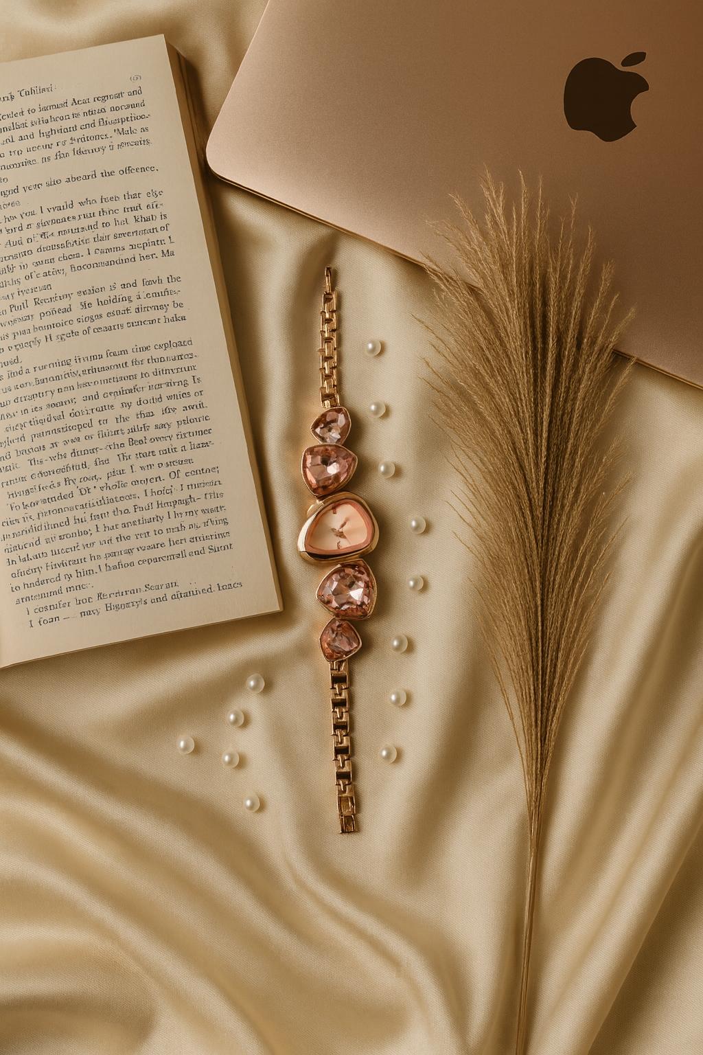 Strap Style :- rose gold toned, embellished, metal strap with a foldover
