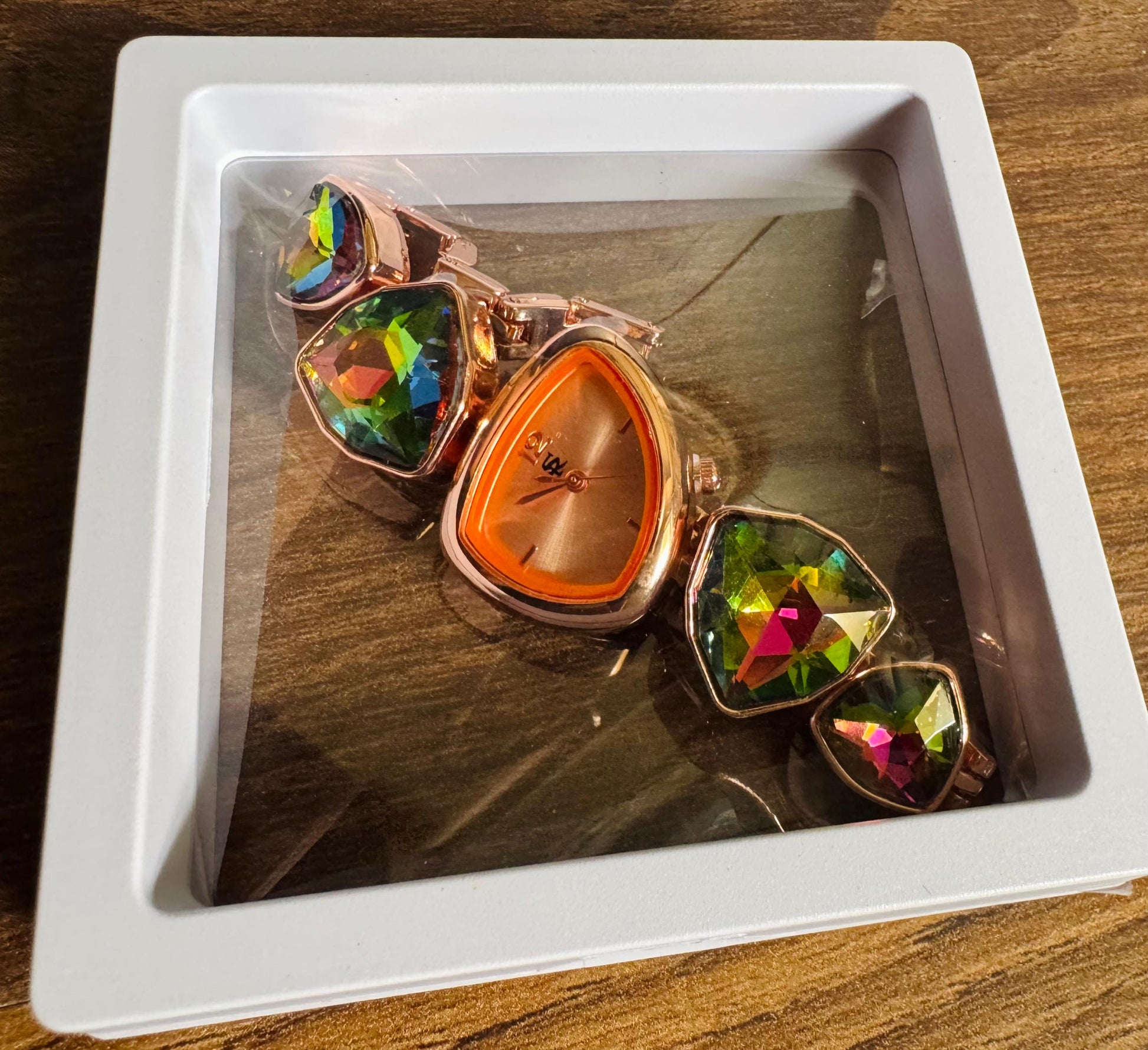 Elevate your style with this expert-crafted Crystal Studded Analog Watch designed for women. Featuring a unique asymmetrical rose gold dial paired with a matching stainless steel strap, it combines elegance with contemporary fashion. Precision analog movement ensures reliable timekeeping, while the crystal embellishments add a subtle sparkle. Made in India, this watch offers both aesthetic appeal and durable quality, perfect for those who appreciate refined craftsmanship and standout design.